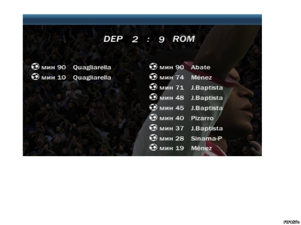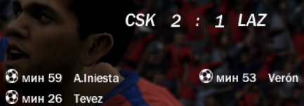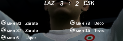 | Фулхэм-Лацио-1-2 голы: Роммедаль - Лопес, Креспо Лацио-Фулхэм-3-2 Ледесма, Сарате, Креспо - Шевченко-2 Спасибо Руслан за игры! Желаю побольше красивых голов, как Шева забил.