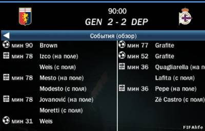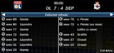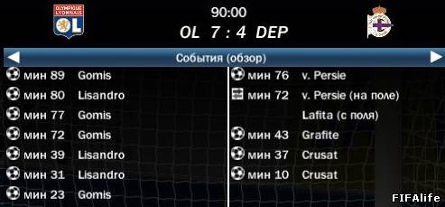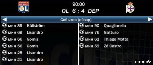 | Лион 9 - 4 Депортиво играли в два приёма, после разрыва скрин не сохранился. Голы: Гомис, Лопес. Ответка: