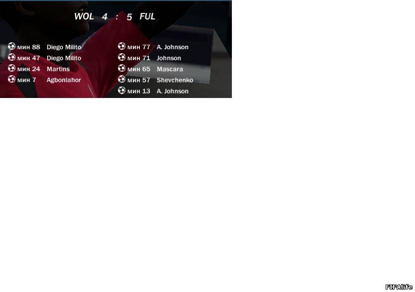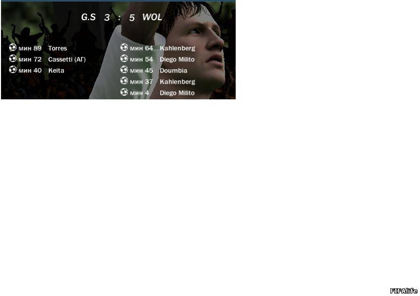 | Fulham - Wolfsburg 1-3 Wolfsburg - Fulham 4-5 Выигрывал 3-1,но потом Руслан просто смял меня!!!Ну Виталя подсунул мне кипера дерево-деревом